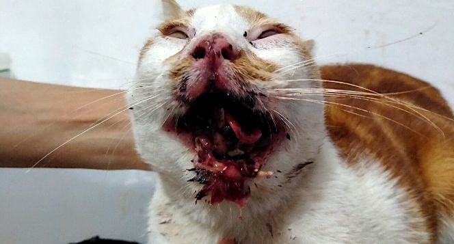 Bantu Si Kucing Abu Yang Hancur Rahang Hidungnya