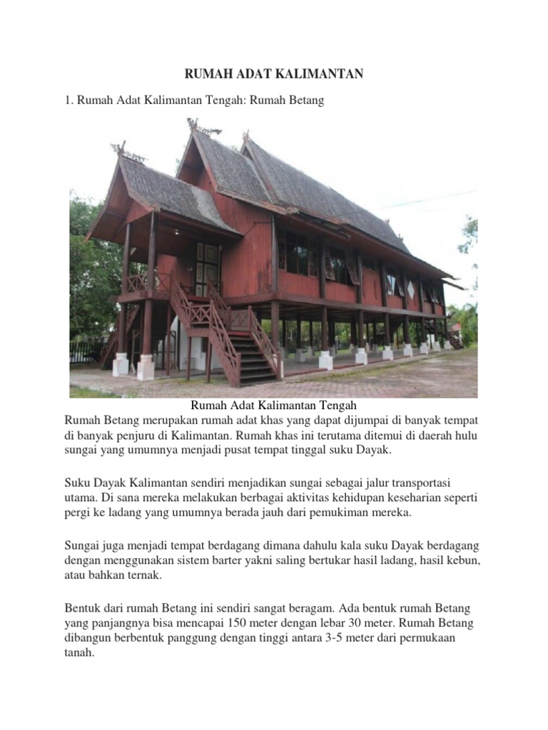 Namanya adalah Rumah Betang Radakng. 40 Gambar Rumah Adat di Indonesia 1. Mau gambar rumah adat Jawa Bali Sunda Kalimantan Sulawesi hingga Papua semua ada di sini.
